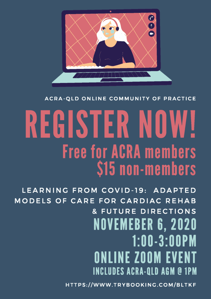 Register now for ACRA-Qld’s Community of Practice Online Event. You will be able to learn from CR providers and each other about adaptations made to CR models of care during COVID, what works, what doesn’t and the lessons we can take as we move forward with service delivery into the future. Includes a group discussion/Q & A and the ACRA-Qld AGM.